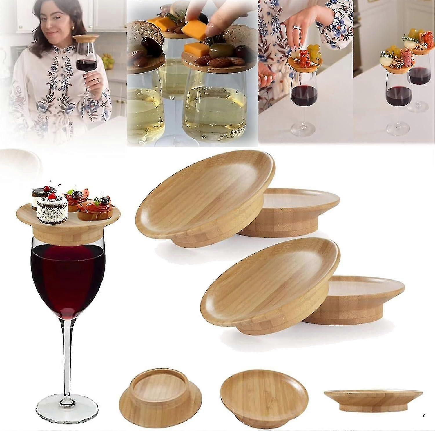Wine Glass Charcuterie Topper, 2024 Wine Glass Charcuterie Board Topper, Bamboo Coasters Wine Glass Topper, Appetizer Plates Wine Glass Topper
