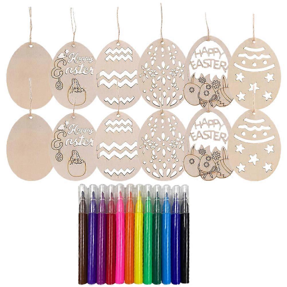 Wood Hanging Ornaments Unfinished Egg Embellishments Egg Hunt Basket Filler 8x6cm 30Pcs