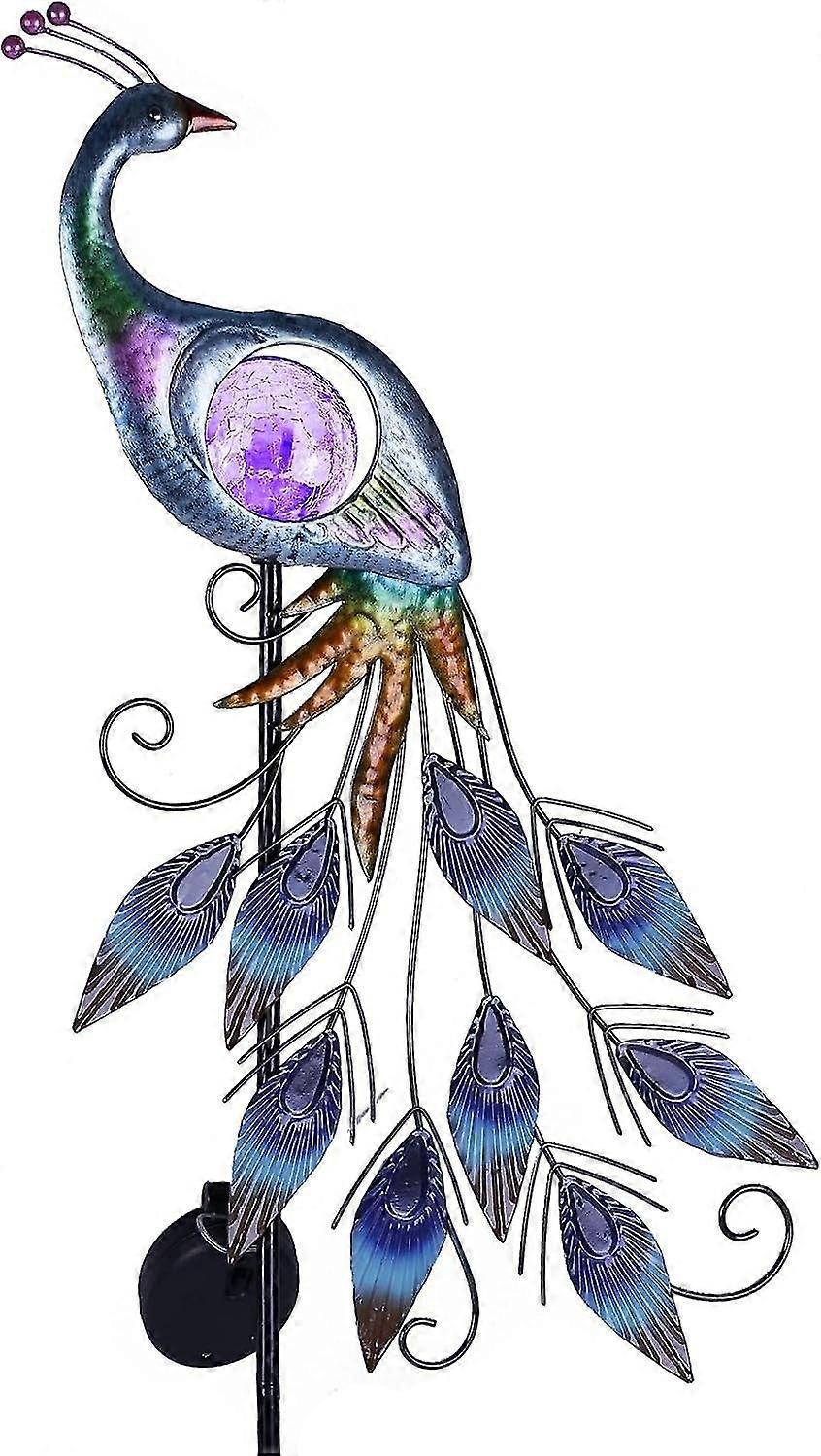 Outdoor garden decoration for garden gifts, 31.5 inch metal peacock solar stake light with crackled
