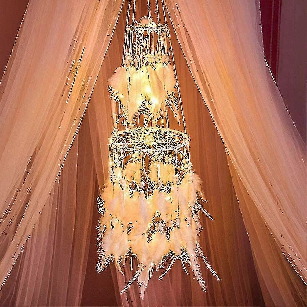 Dream Catcher Decoration With Warm Led Light Chain To Hang Up, Warm White Warm Light, White / Pink High Quality