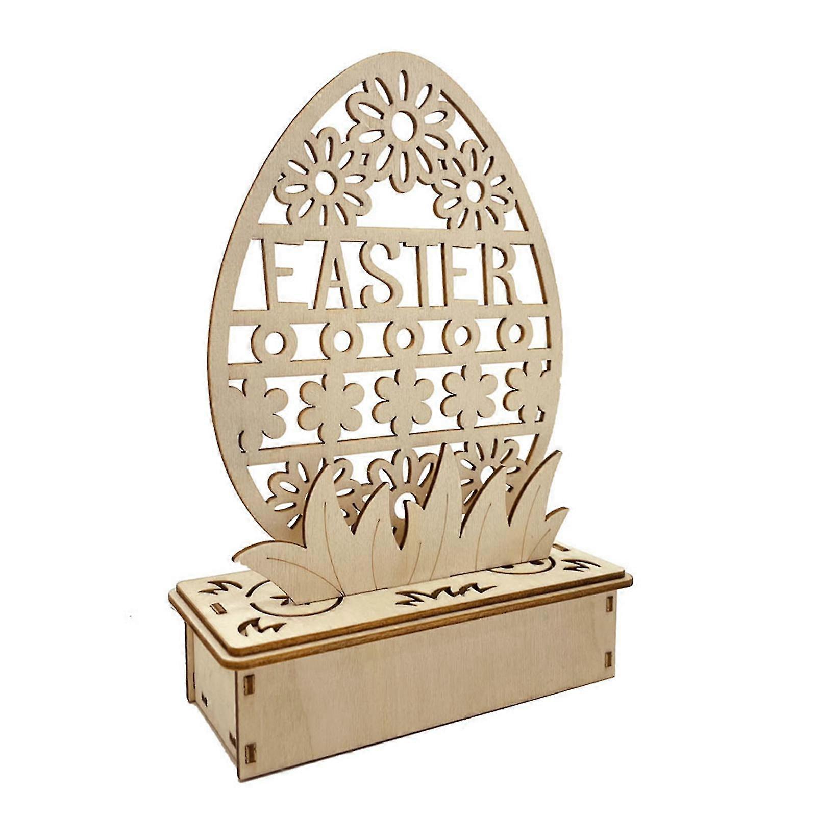 Wooden Egg Desktop Ornament With Light Battery Operated Led Glowing Hollow Gifts Happy Easter Basswood Egg Decoration Party Supplies