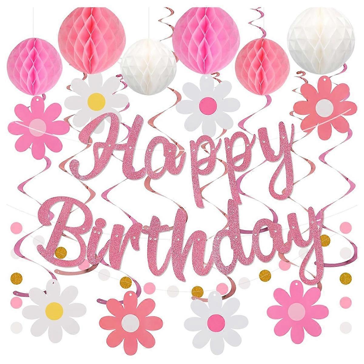 Birthday Decoration,Pre-Strung Happy Birthday Banner with Honeycomb Ball,Happy Birthday Party Decor