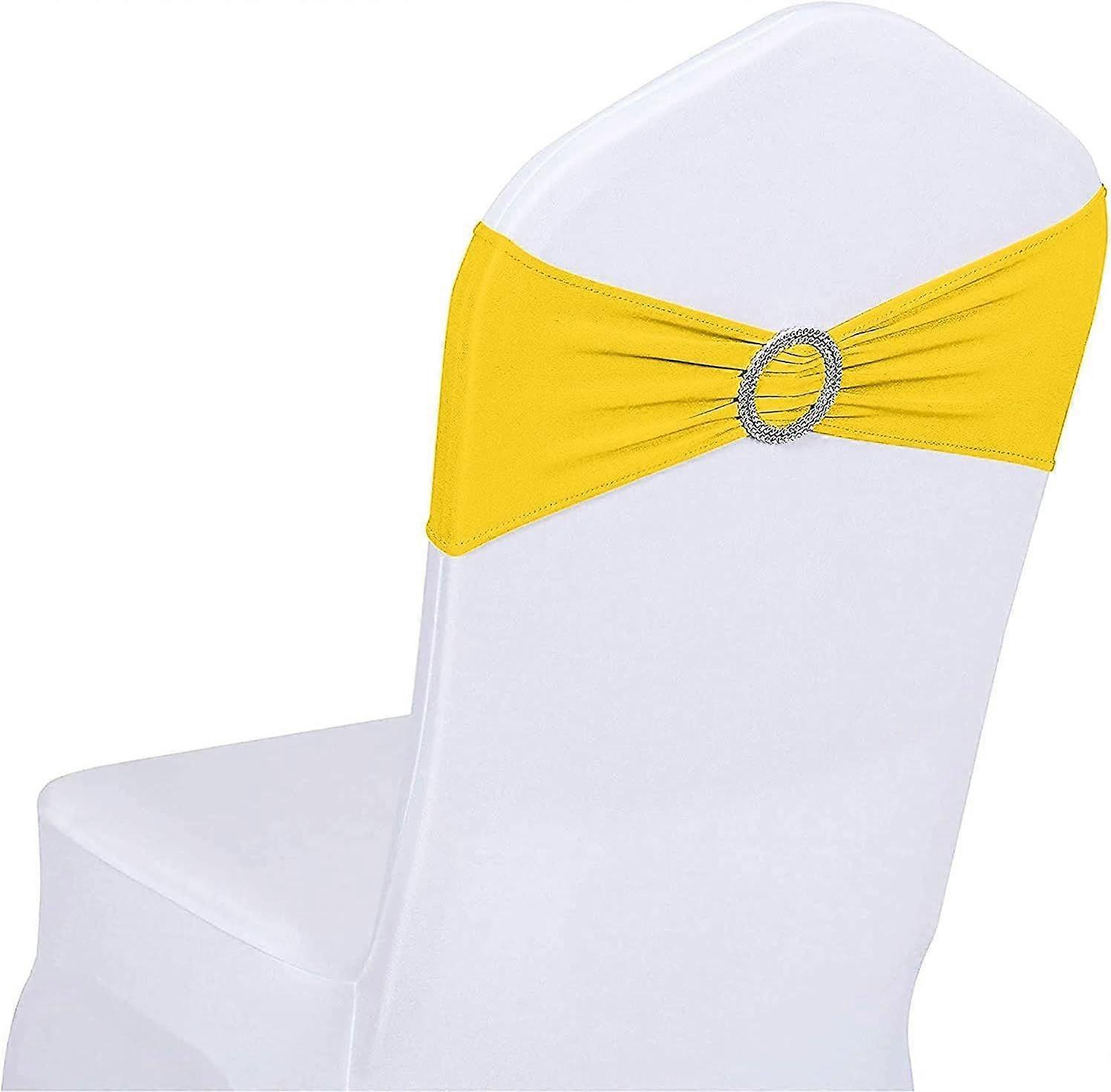 Yellow Chair Sashes, 25PCS Spandex Sashes Bows, Chair Cover Bands with Buckle