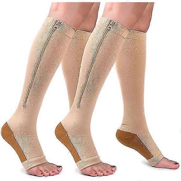 2 Pairs Copper Zipper Compression Socks 15-20mmgh-calf Knee High Open Toe Support Stockings Compression Socks/Small-Medium-Copper Nude