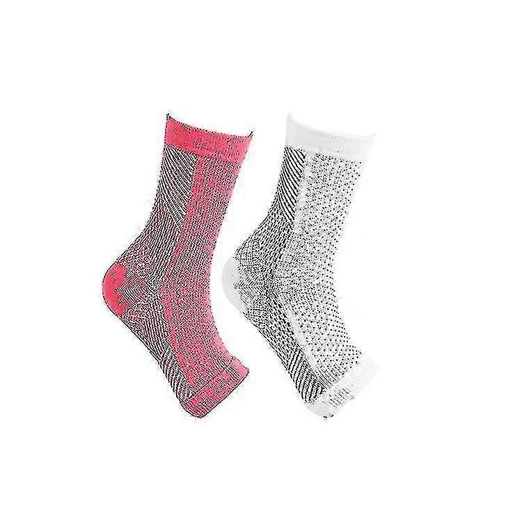Package includes 2 pairs of protective socks, one pair of pink and one pair of white<br> Material: Nylon<br> Features: Neuropathic Compression Socks Ankle Arch Support Protective Socks Quickly adjust heel and arch pain Socks improve blood circulation, relieve swelling and energize tired, sore feet and ankles. Breathable, Odor-Resistant Fabric Provides All-Day Comfort Breathable, low-odor fabric ensures your feet stay fresh and hygienic All-day clean targeted support Maintenance The bottom of the sock is tighter than the top, which gently pushes blood from the bottom of the foot to the top. If your legs or feet are even a little swollen, you should try SootheSocks.<br> Stabilizes the foot so you can wear it all day with peace of mind and experience superior comfort and foot stability. Almost immediate pain and swelling relief so you can stand, walk or run without pain<br> Prevents Injury and Supports Healthy Circulation You'll love the soothing effect that improves circulation, reduces swelling, pinching or discomfort even in the toes, quickly relieves heel and arch pain Prevents injury and supports healthy circulation Stabilizes the foot for peace of mind Breathable, odor-resistant fabric for all-day comfort Specifications