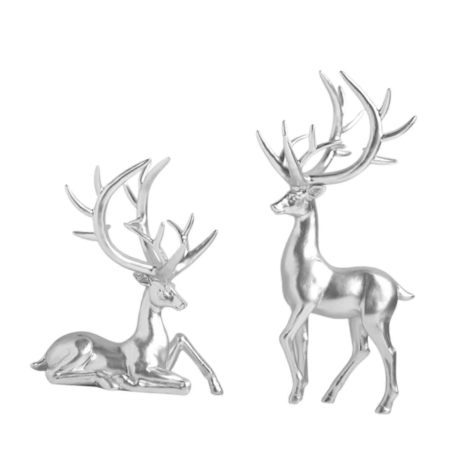 Pair Elk Resin Statues Housewarming Bedroom Farmhouse Wedding Animal Figures Argent