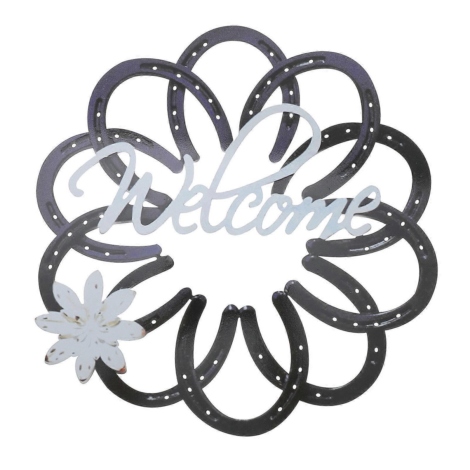 Door Decorations Hanging Flower Welcome Sign Iron Wall Hanging Decor Offices Farmhouse Style 30x30cm 1Pack
