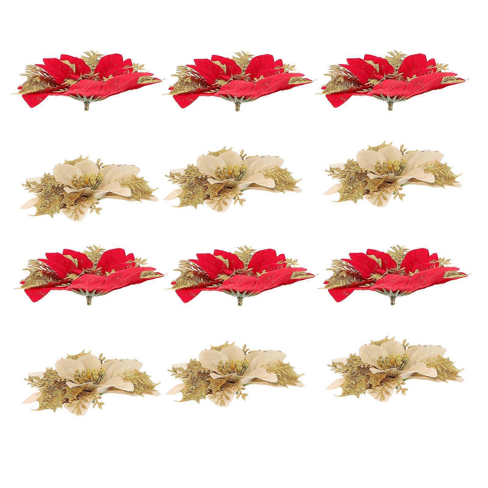 Xmas Fake Flower Ornaments For Christmas Tree Decoration 24Pcs Assorted Color Stylish And Simple Design