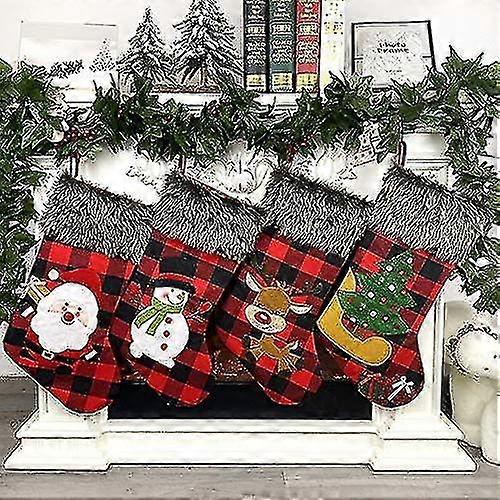 Christmas Decorations Christmas Stockings -large 18'' Xmas Stockings With Buffalo Plaid,plush Fluff,santa,snowman,reindeer,xmas Tree - Gift Holding