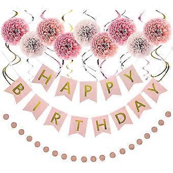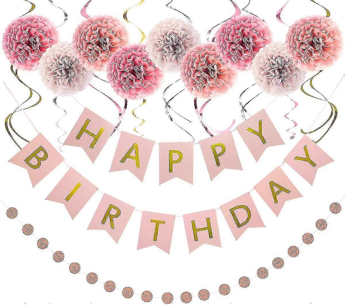 Birthday Decorations, Tri-color Happy Birthday Decorations For Women, Happy Birthday Banners, Hanging Swirls, Paper Garland And Flowers For Kids Dini