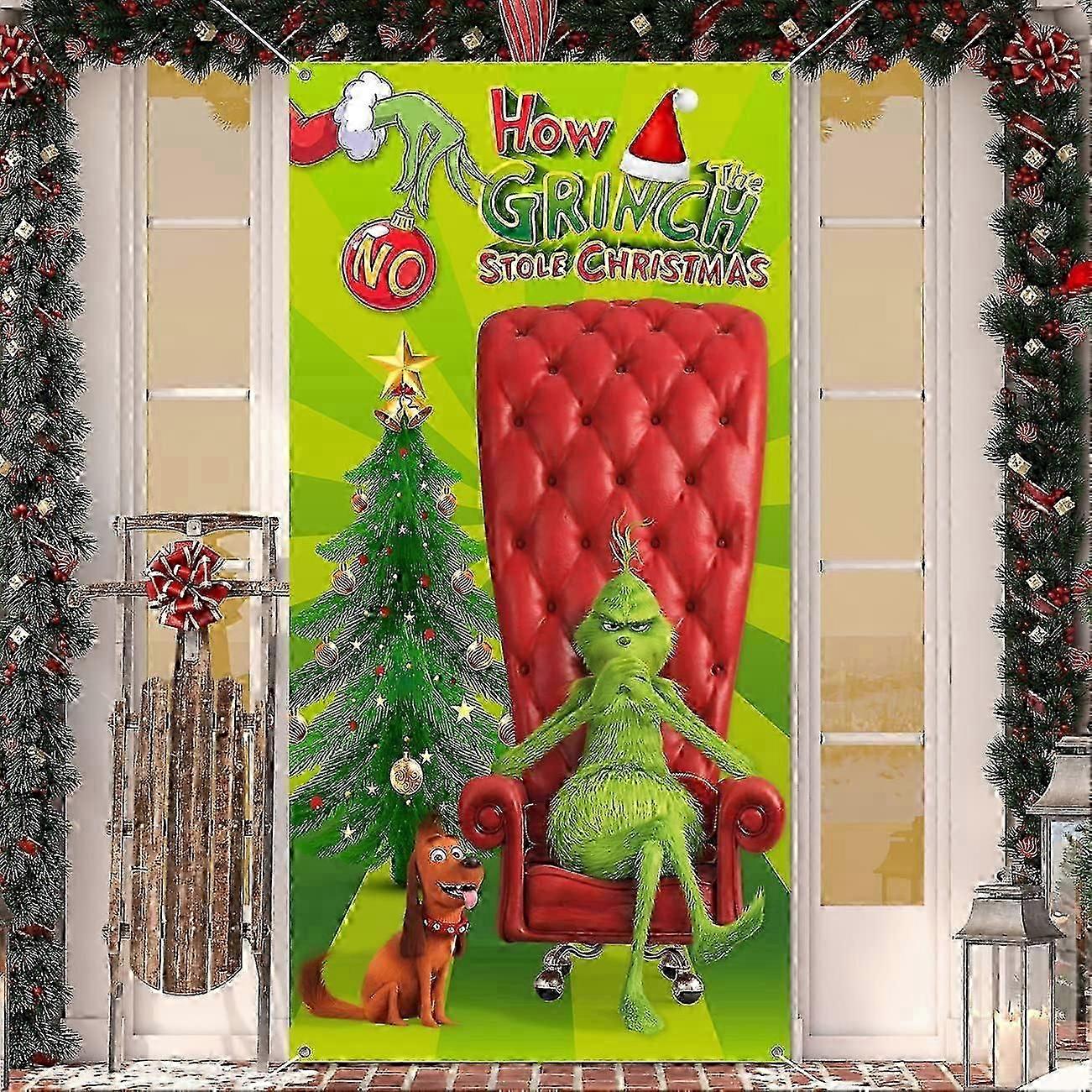 The Grinch Christmas Door Cover Decorations, Funny Xmas Hanging Banner Backdrop