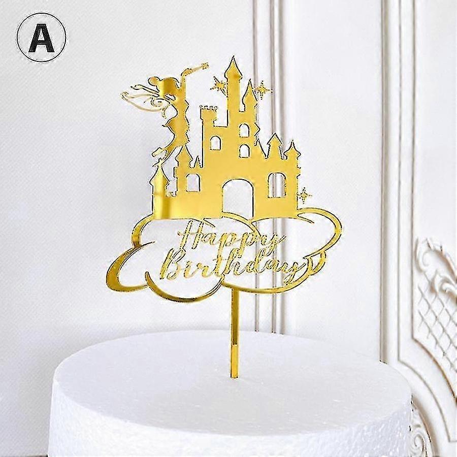Happy Birthday Cake Toppers Gold Acrylic Cake Decorations Little Fairy