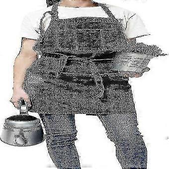 Denim Apron, Unisex Adjustable Bib Apron With Pockets For Cooking Kitchens Black