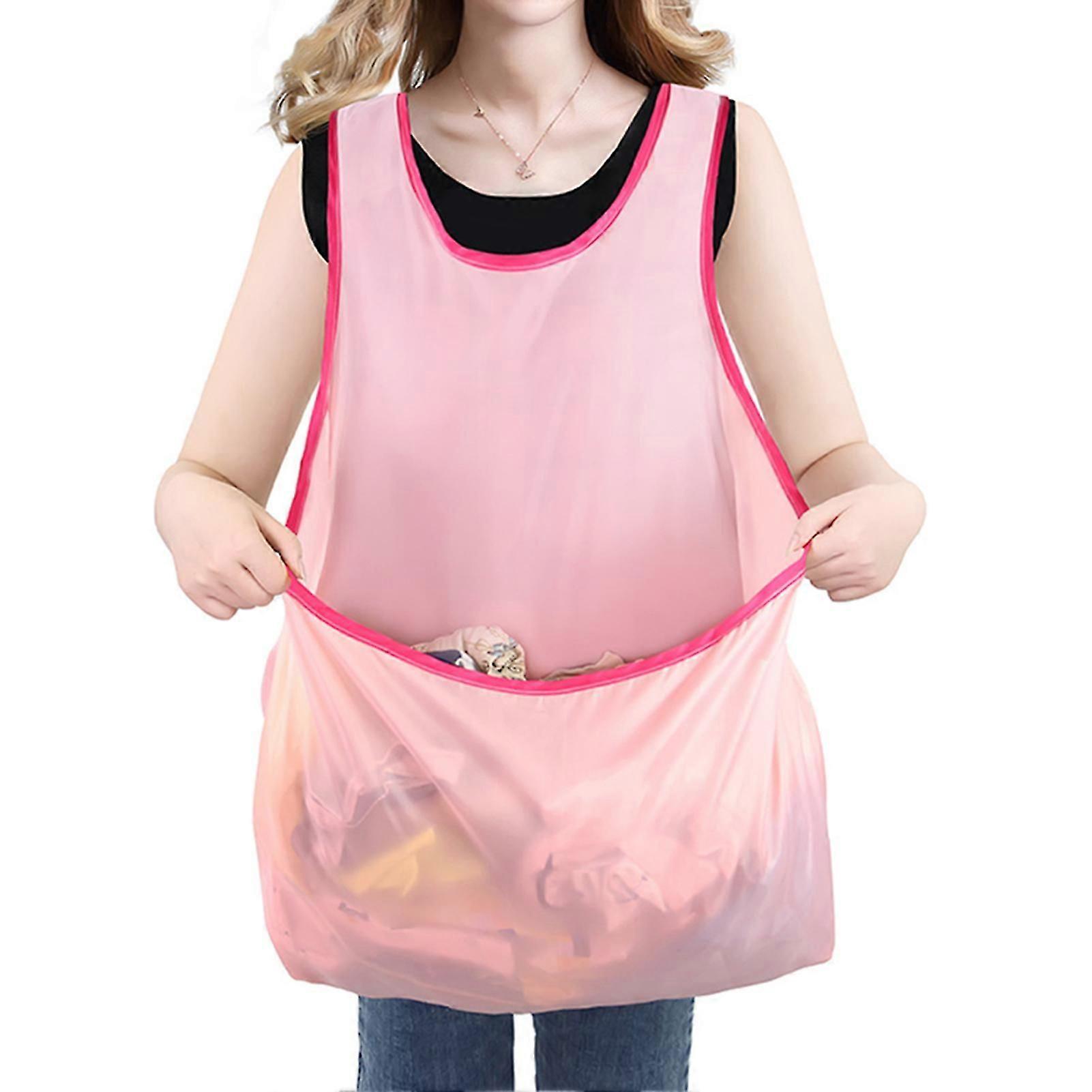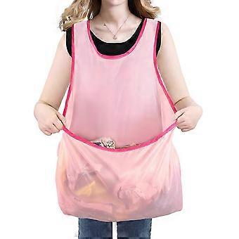 Women Laundry Apron with Pouch - Waterproof Oxford Apron Hanging Pocket for Drying Clothes, Harvesting, Gardening