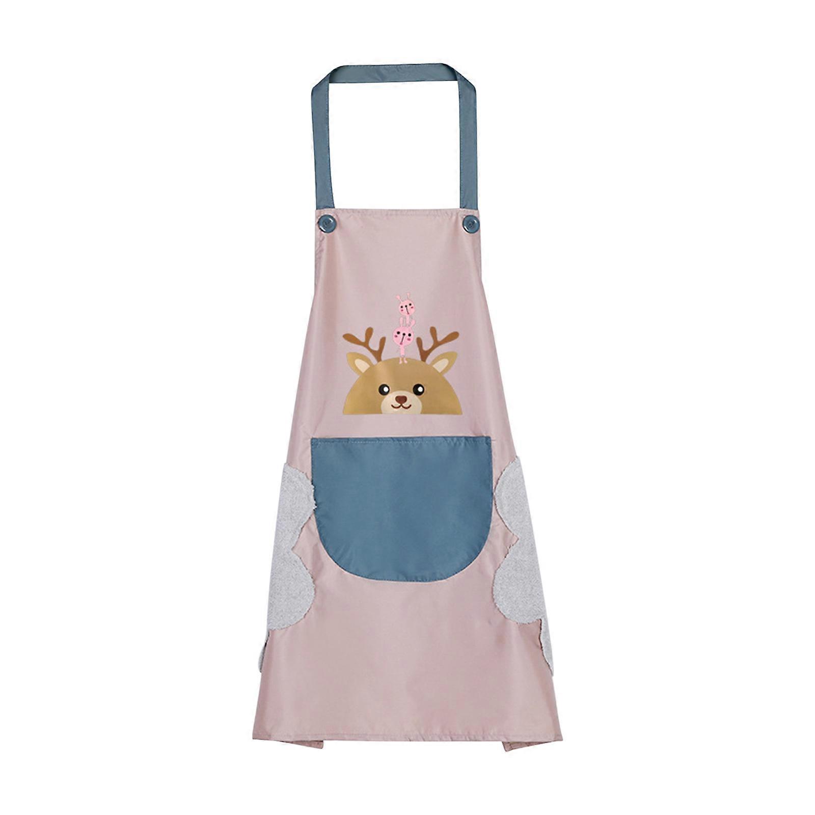 Cute Apron for Ladies with Pockets, 2-Sided Coral Fleece Towel Oil Cooking Kitchen Apron