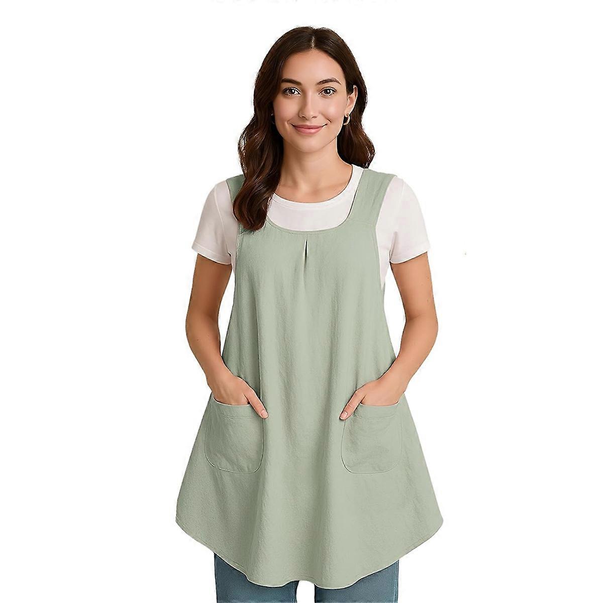 Apron with Pocket Cotton Linen, Japanese Back Apron Green
