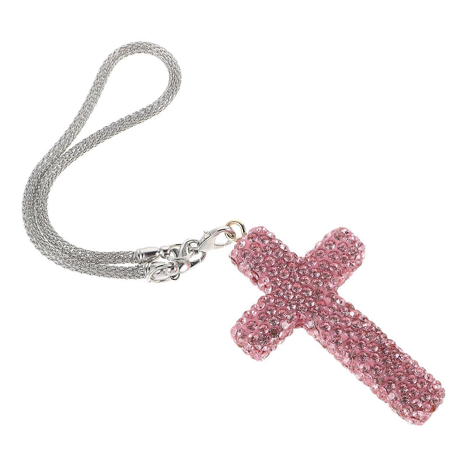 Shining Rhinestone Cross Necklace Multifunctional Religious Pendant for Car Interior and Bag Decoration Durable Hiphop Style Christian Ornament for