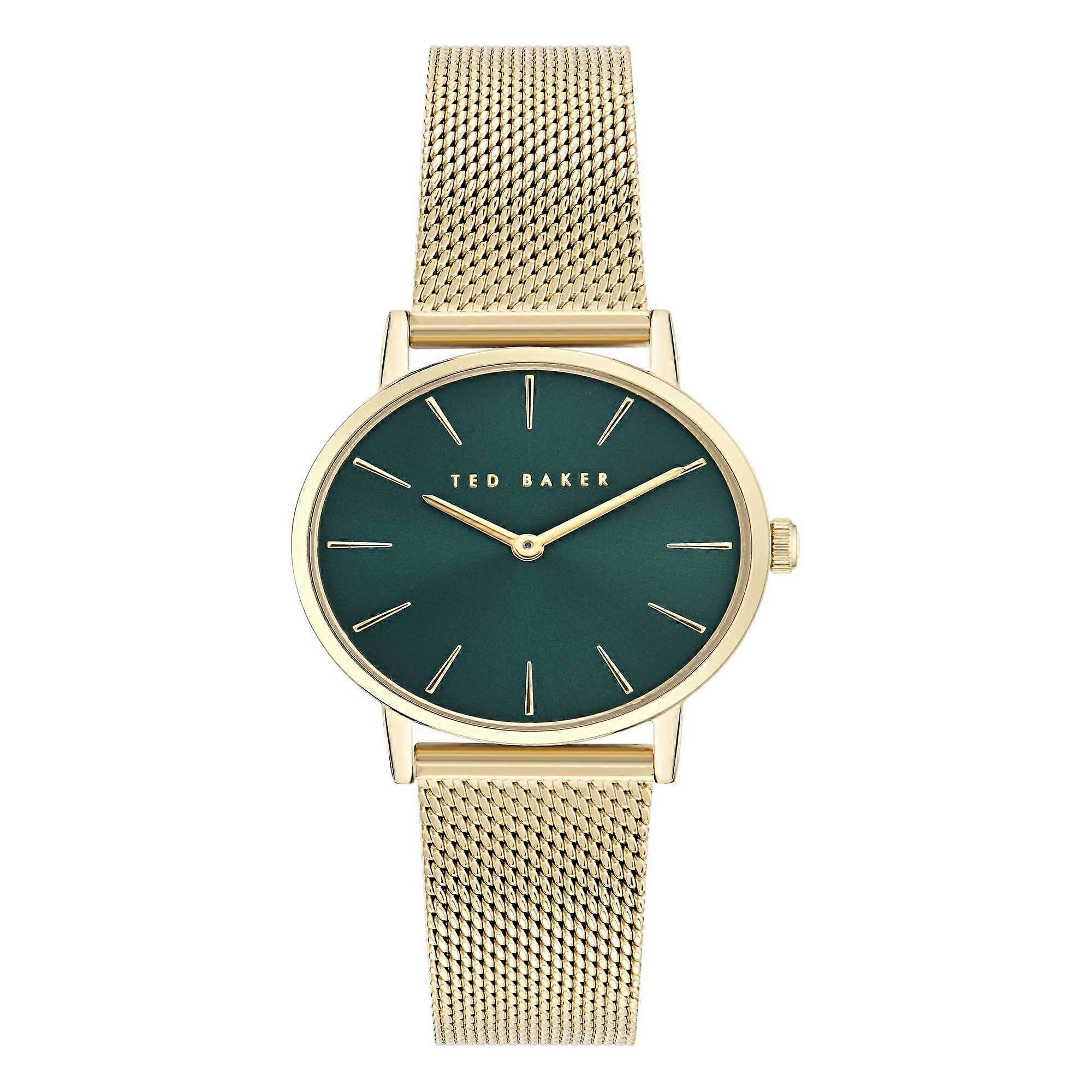 Ted Baker Ladies Classic Chic Green Steel Watch BKPSTF411 Elevate your style with the exquisite Ladies Classic Chic Green Steel Watch BKPSTF411. This stunning timepiece embodies elegance and functionality, making it the perfect accessory for any occasion. Crafted with precision, this watch showcases a captivating green dial that radiates sophistication, complemented beautifully by a yellow gold stainless steel mesh band. The chic design serves as a statement piece while providing the versatility to transition seamlessly from day to evening wear. Its yellow gold color adds a touch of glamour and perfectly highlights the mesmerizing sunray finish of the dial. The mineral glass crystal protects the watch face, allowing for clear visibility and enhanced durability. The Ladies Classic Chic Green Steel Watch BKPSTF411 offers more than just great looks. Experience these key features: Water Resistance: With a water resistance rating of up to 50 meters, this watch is ideal for everyday wear and can handle splashes and brief immersions in water, adding an extra layer of comfort. Sustainable Sourcing: This exquisite watch comes packaged with care, utilizing 100% sustainable materials, so you can feel good about your purchase while looking fabulous. Designed for the modern woman, this watch blends classic style with contemporary flair. The adjustable clasp ensures a perfect fit on your wrist, enhancing both comfort and style. Additionally, a reliable quartz analog mechanism guarantees accurate timekeeping, so you never miss a moment. Indulge yourself or surprise a loved one with a gift that speaks volumes. Each Ted Baker product is beautifully presented in exclusive packaging, complete with a gift bag, box, and certificate of authenticity. Choose the Ladies Classic Chic Green Steel Watch BKPSTF411 for a touch of luxury that will last for years to come.