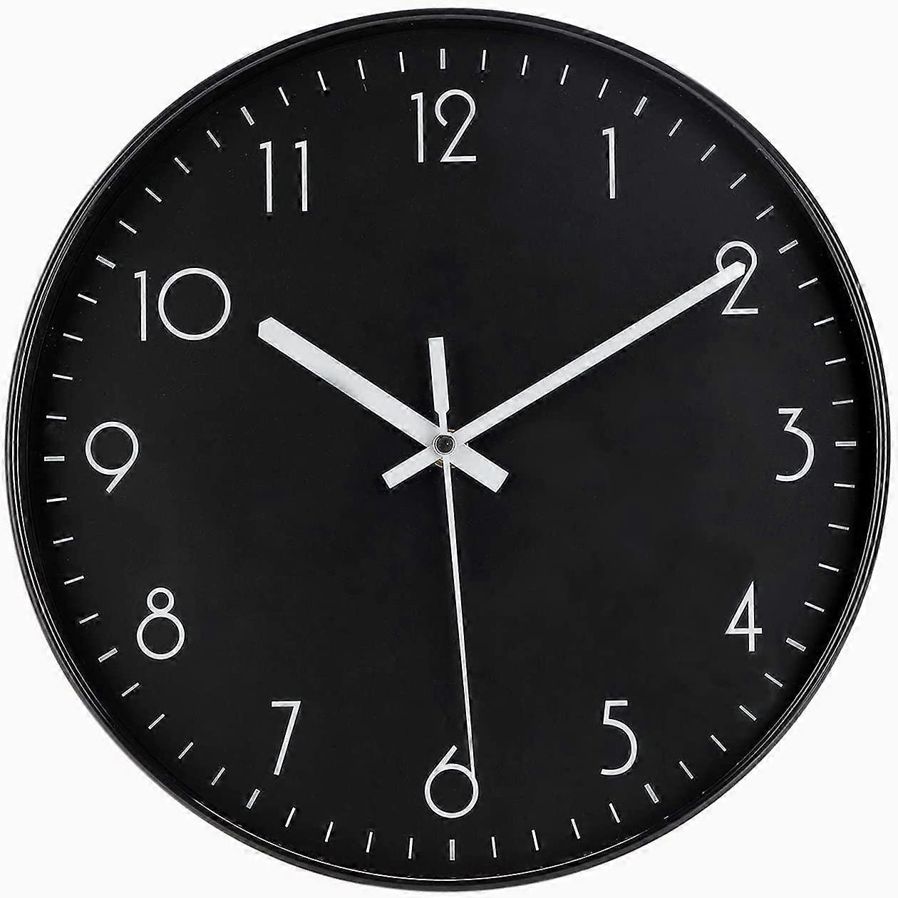 Black Wall Clock, 12'' Modern Minimalist Silent Clock, No Ticking Quartz Movement Powered by Battery, Easy to Watch