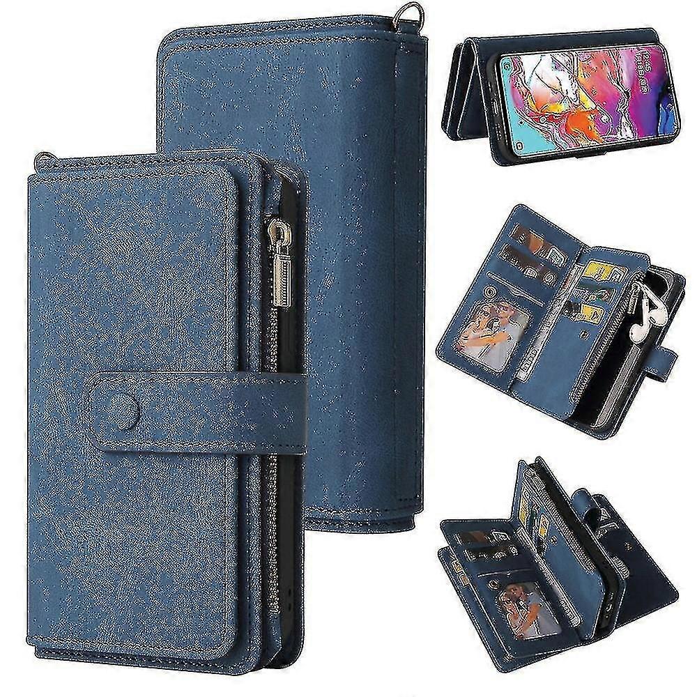 Samsung Galaxy A70 Cover Credit Card Holder Shock Resistant Premium Pu Leather Scratch Resistant Zipper Pocket - Blue