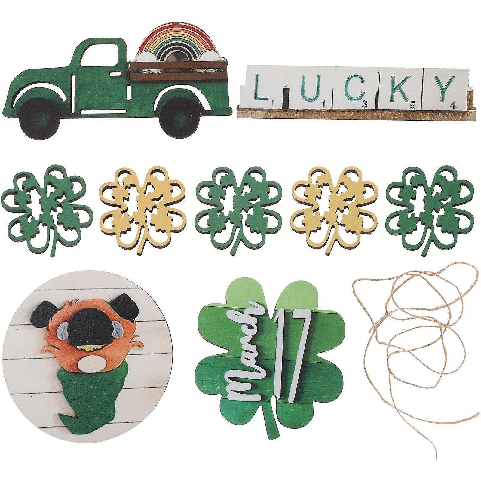 St Patricks Day Wooden Sign Tiered Tray Decor for Decoration 10Pcs Set