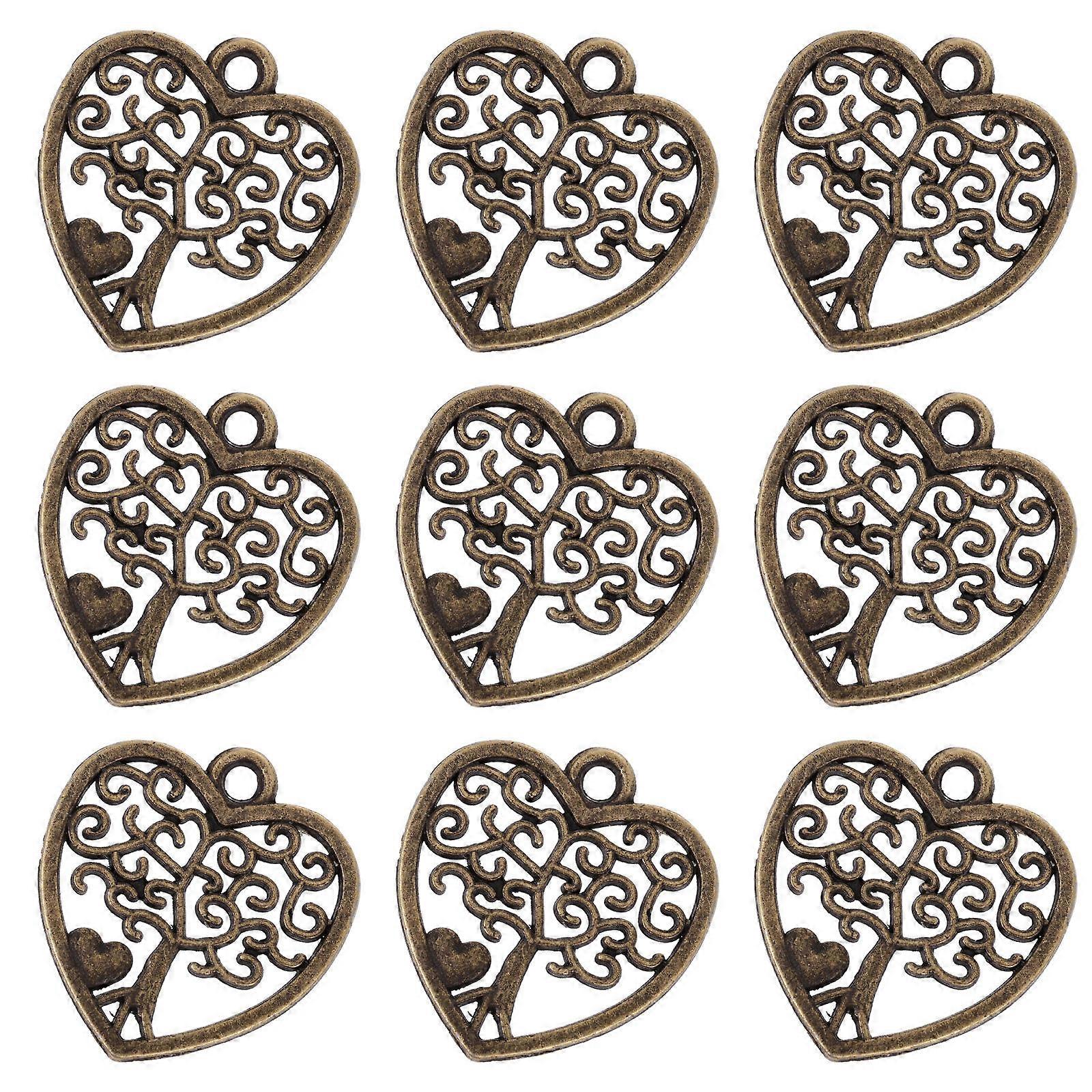 Alloy Hanging Ornaments 50Pcs Heart Tree Charms Home Embellishment 1.8X1.7cm Simple Style for Friends