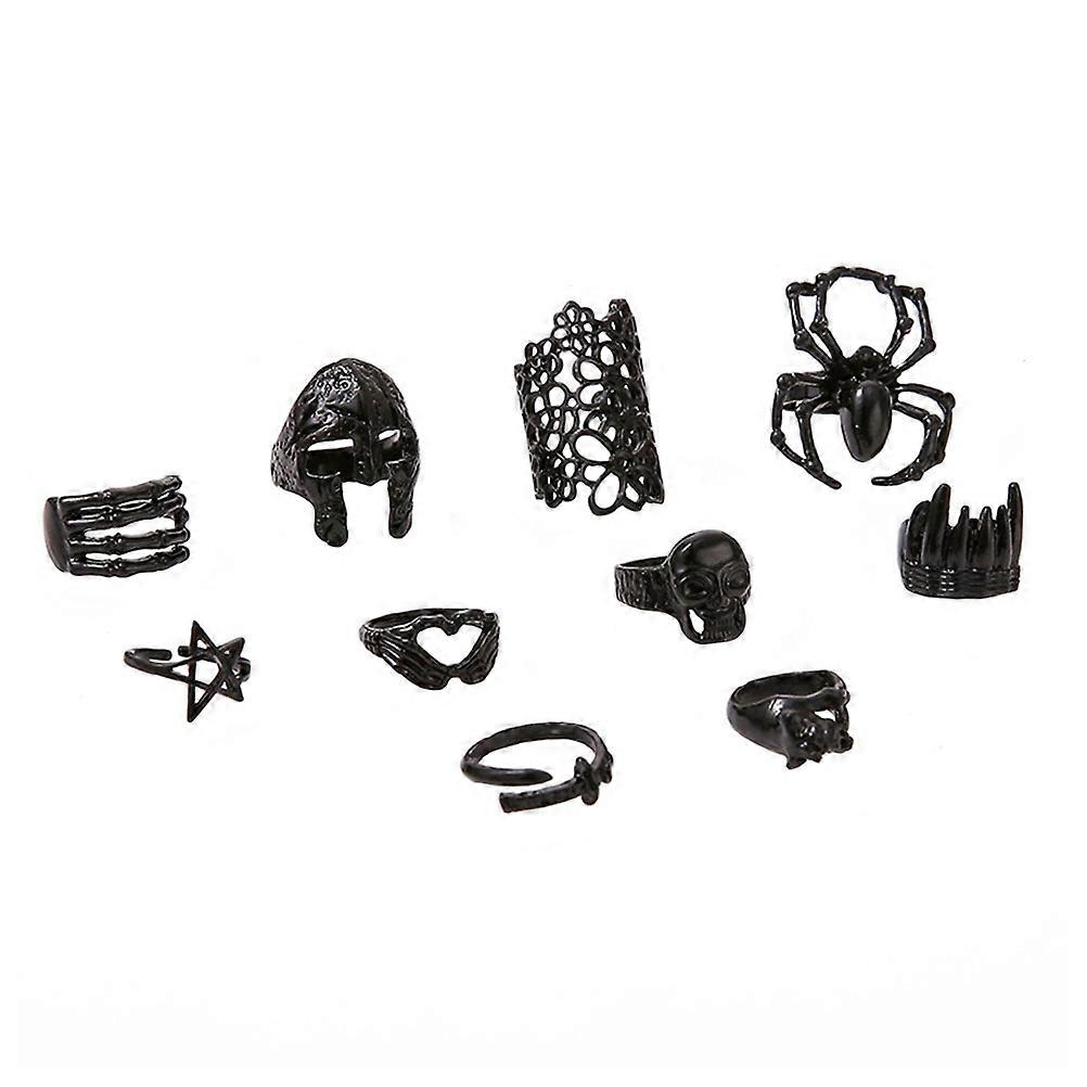 Alloy 10Pcs Halloween Finger Decoration Rings For Costume Party Adornments In Black Color
