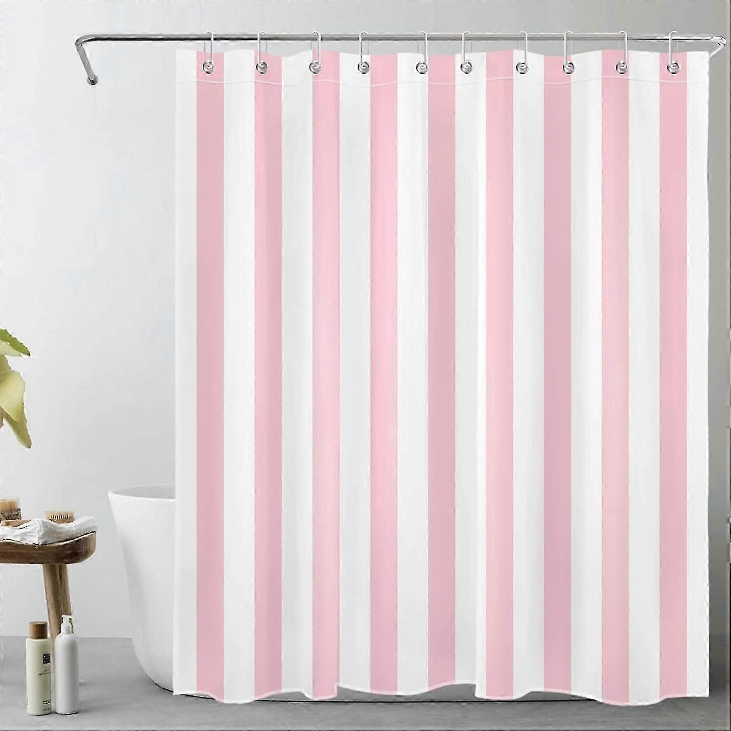 Pink and White Striped Fabric Shower Curtain for Bathroom with 10 Hooks, Vertical Stripe Geometric Shower Curtains for Bathroom, Modern Farmhouse Chic
