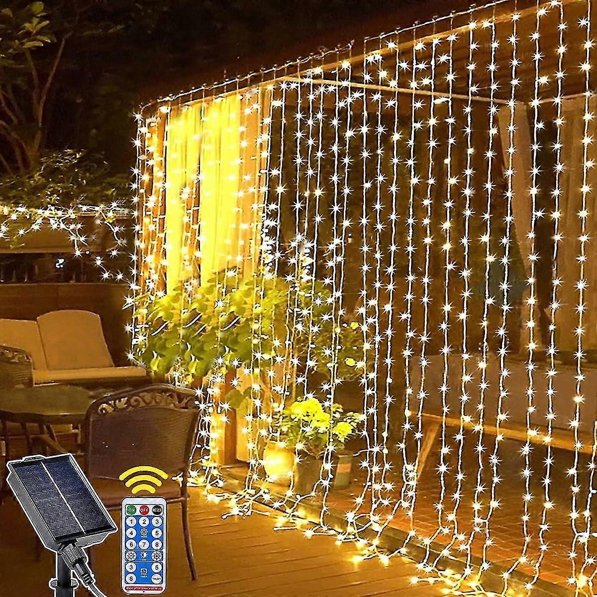 Outdoor Solar Light Curtain, 3m X 3m 300led Solar Light With Remote Control, 8 Modes Waterproof Outdoor Solar Waterfall For Garden, Balcony, Gazebo, P