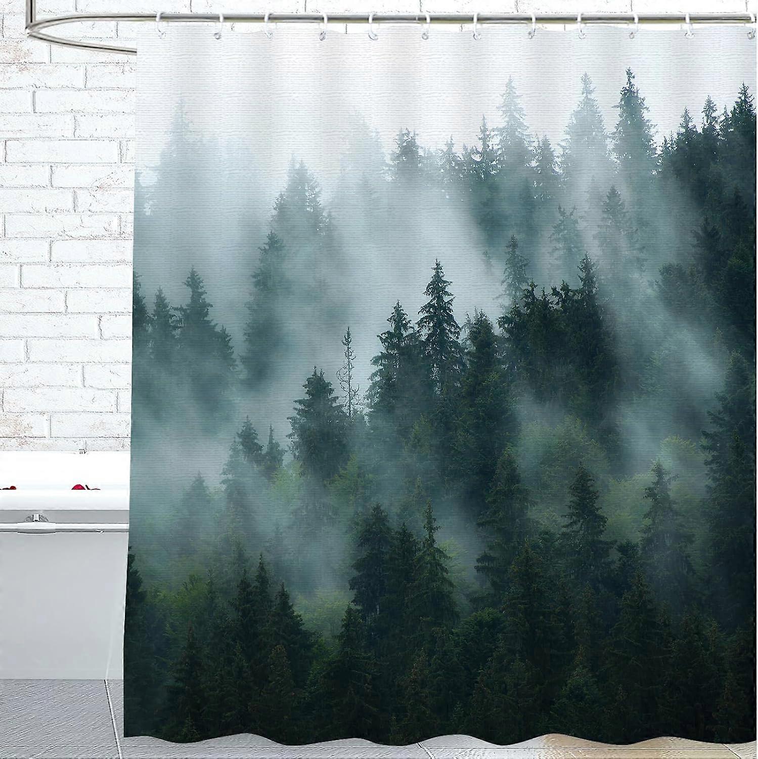 Misty Forest Shower Curtains for Bathroom,Forest Shower Curtain,Dark Green Tree Bath Curtain for Bathroom,Waterproof Polyester Forest Shower Curtain W