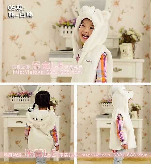 Kids Vest With Animal Hoodie Plush Fluffy Warm Jacket Great Gift For Children