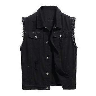 سترة جينز ممزقة كاجوال للرجال، بتصميم كلاسيكي، بدون أكمام، بأزرار للأسفل