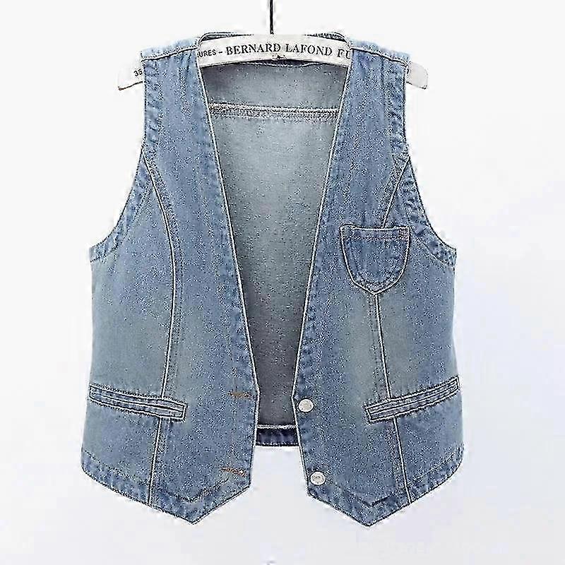 Women's Slim Fit Denim Vest Jacket - Short Sleeveless Top for Spring & Autumn - Single-Breasted Solid Color All-Match Style