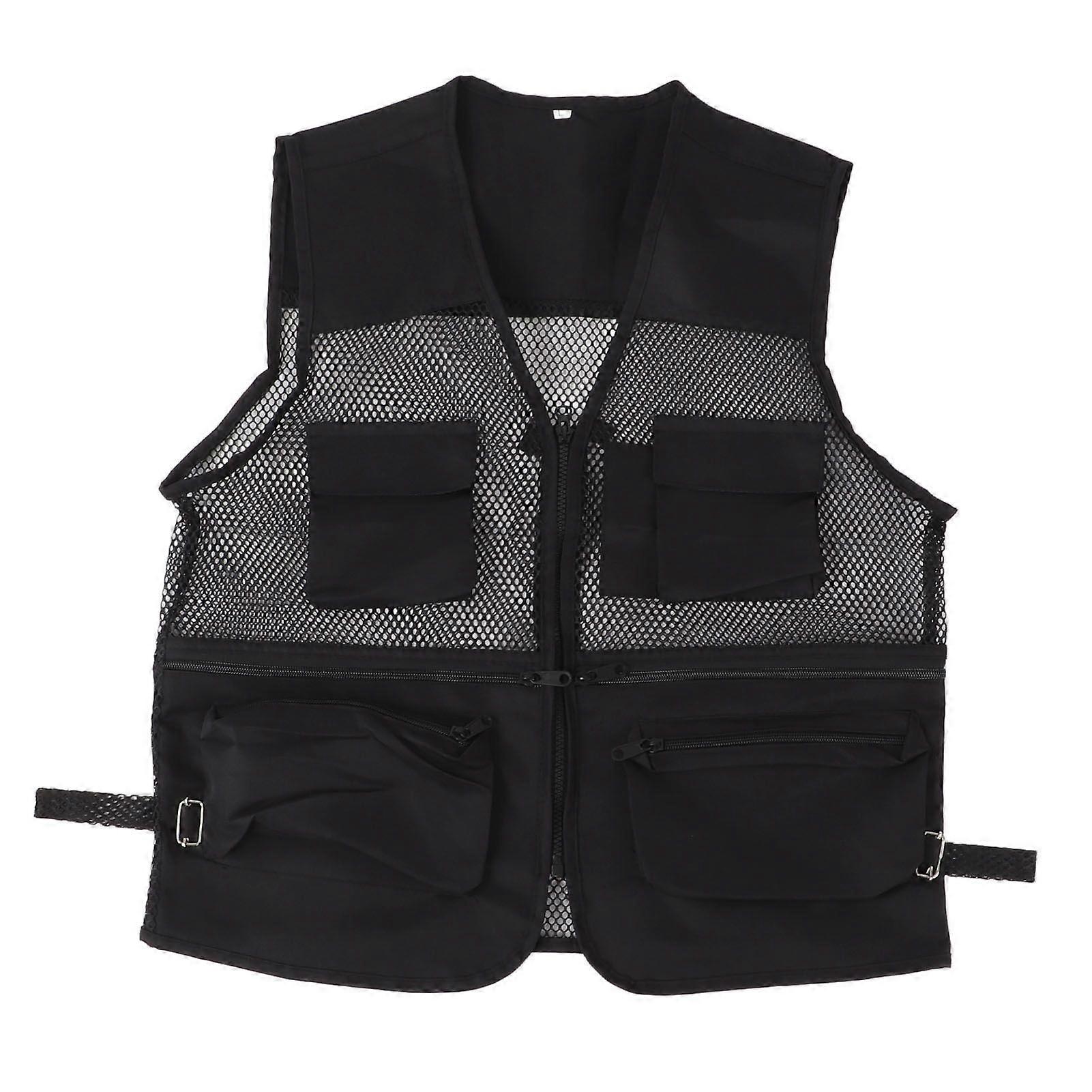 Military Vest Durable Breathable Multi Pocket Mesh Fishing Vest for Outdoor ActivitiesL Black