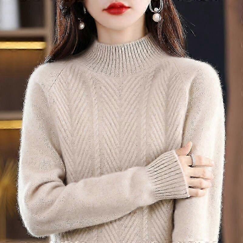 Pure Cashmere Sweater Pullover Women Autumn and Winter Half High Collar Solid Casual Long Sleeve Knitting Bottoming Sweater Top