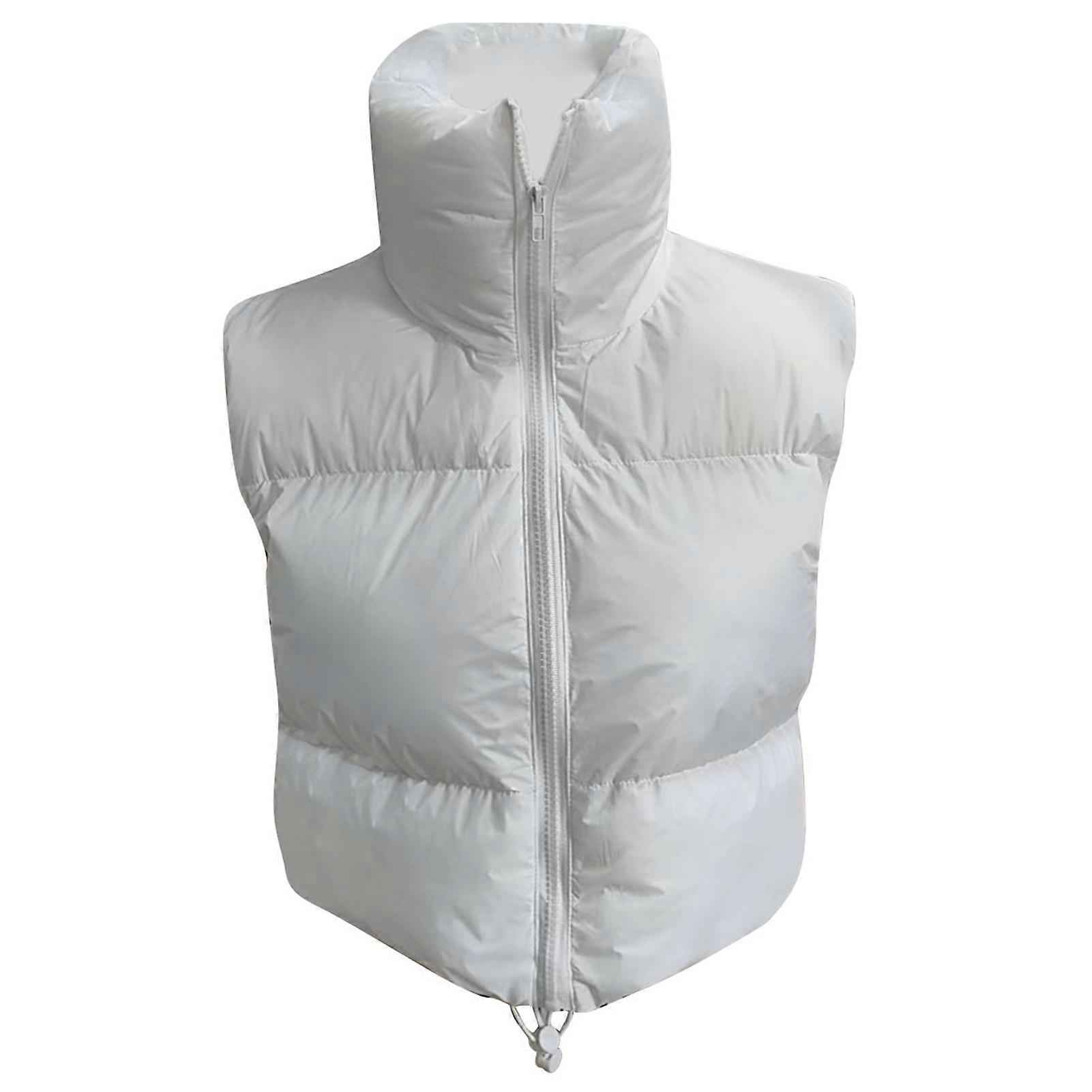 Women Winter Padded Vest Full Zip Up Stand Collar Lightweight Adjustable Drawstring Puffer Vest White XXL