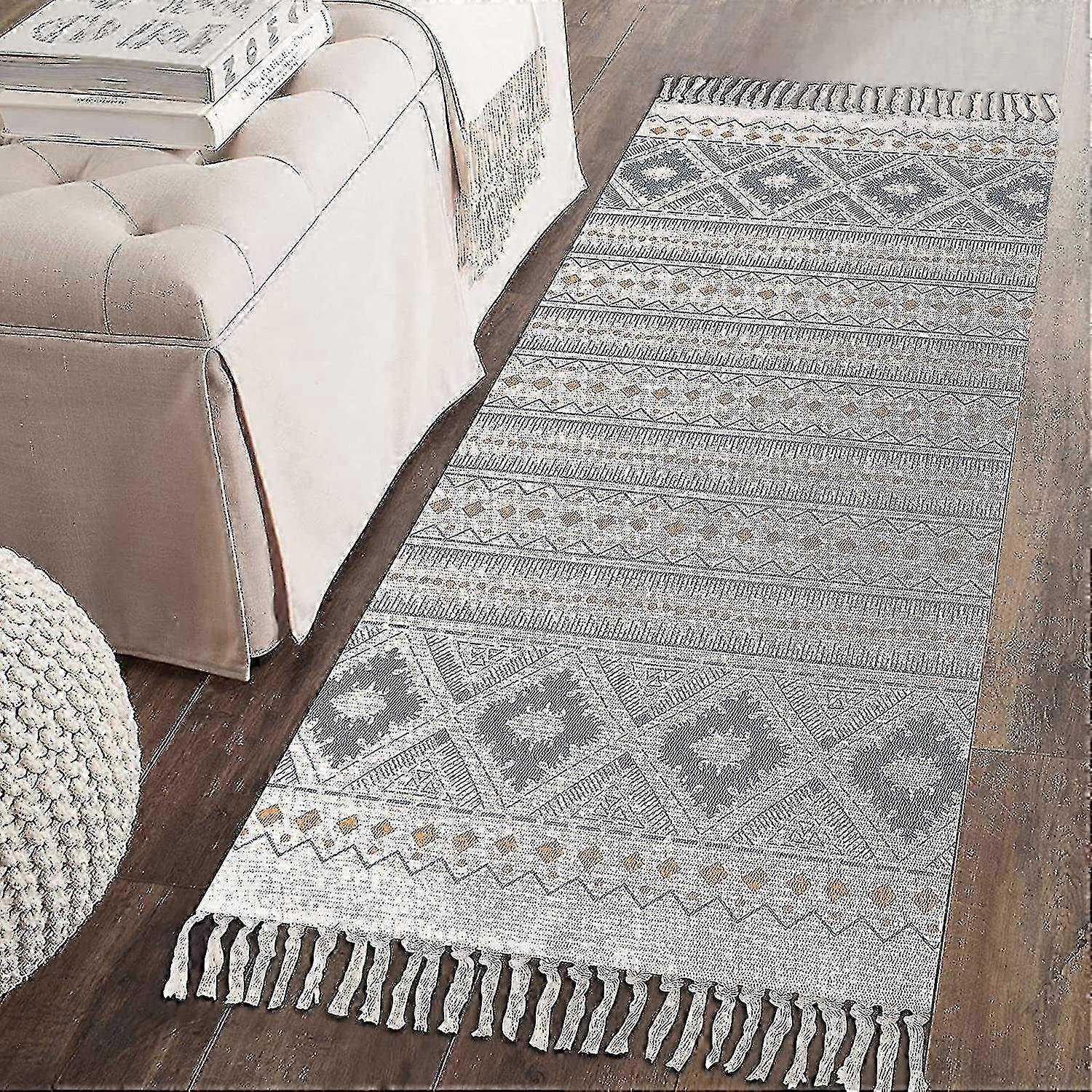 Blue Rug Cotton Washable Cotton Rug Runner Boho Rug With Tassels Vintage Rug - 60x90 Cm