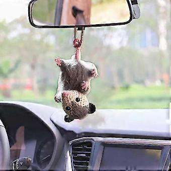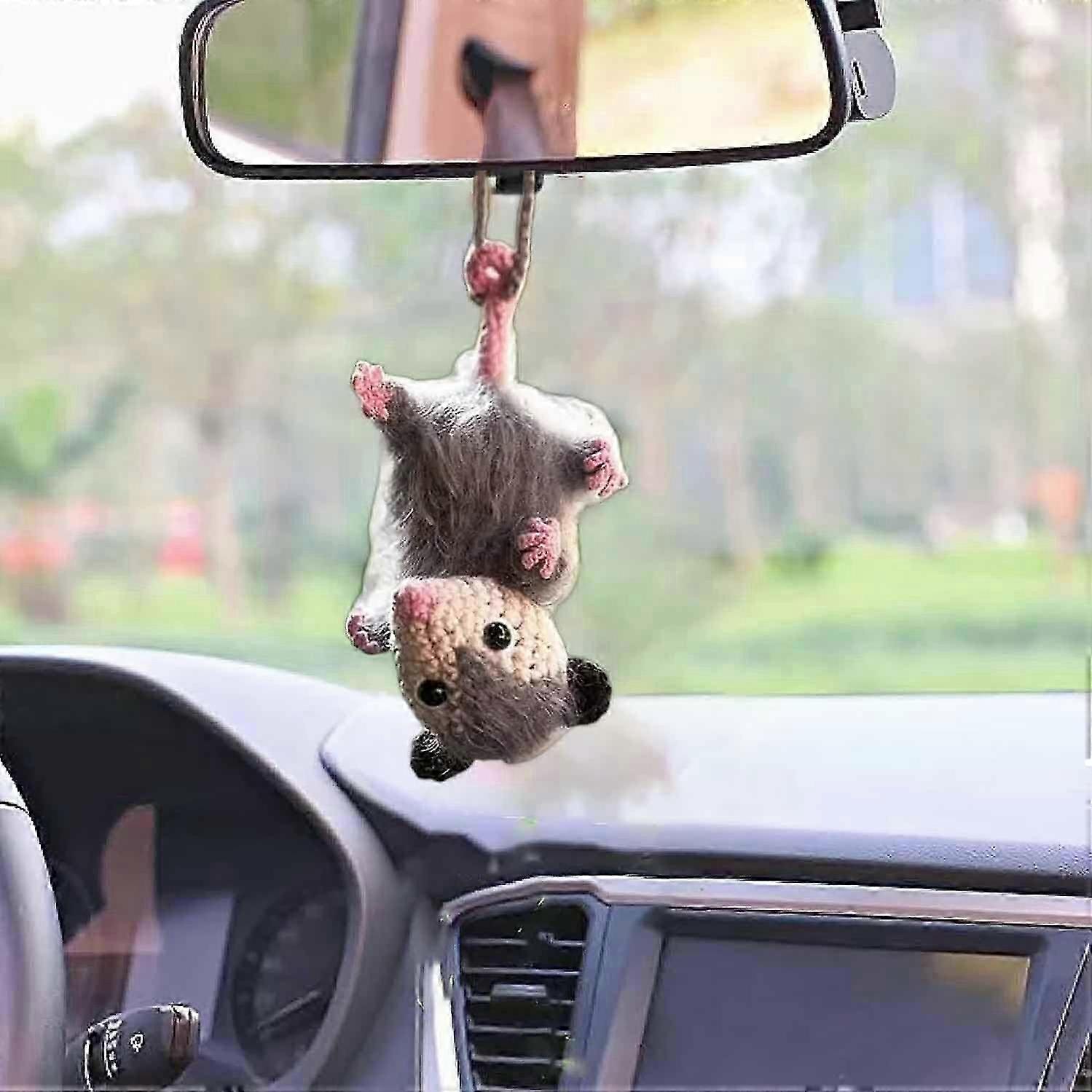 Possum Car Charm, Handmade Knitted Possum Car Pendant, Cute Opossum Car Decoration Rearview Mirror Accessories, Opossum Lovers Gift