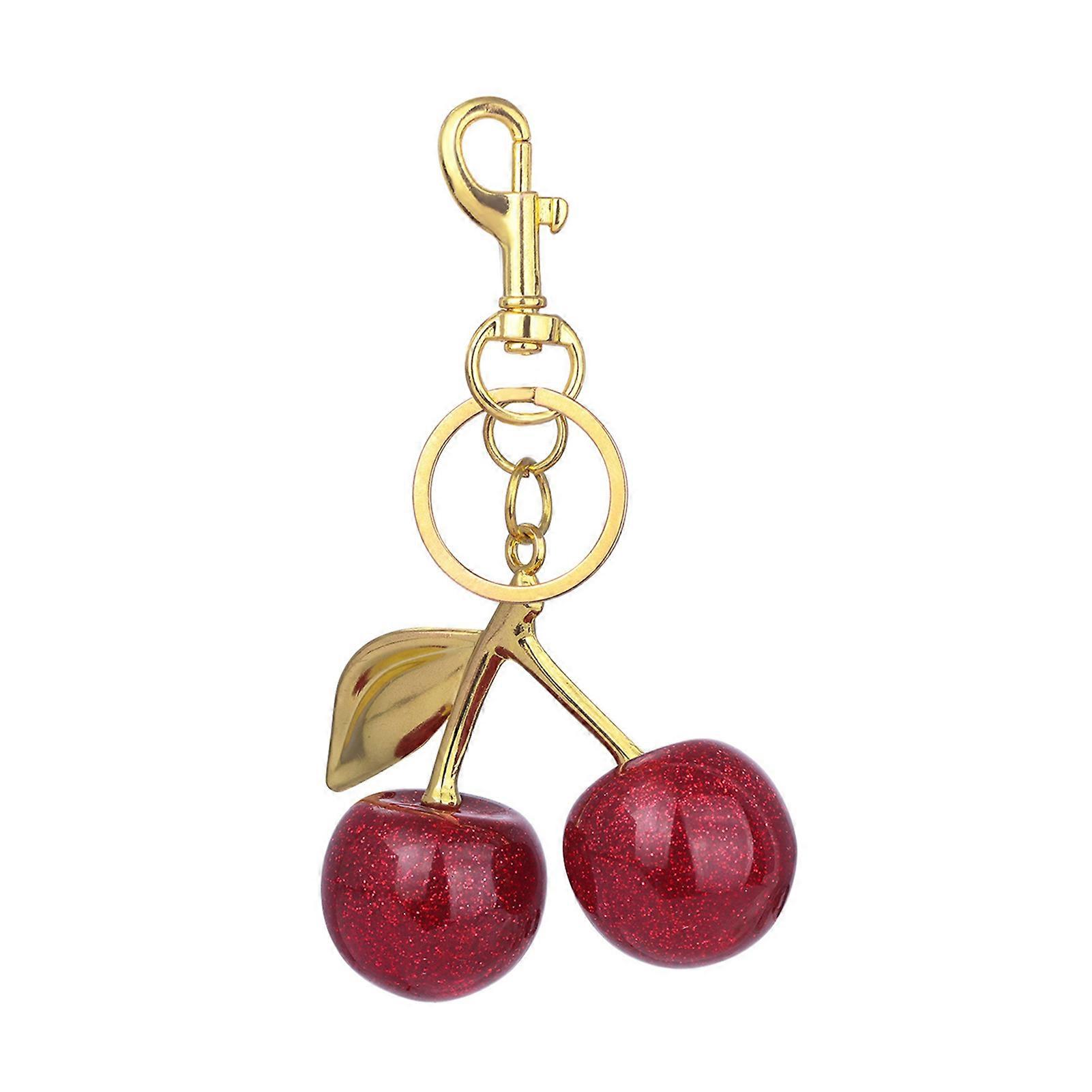 Keychain Bag Charm with Golden Shimmering Resin Cherries Hypoallergenic Steel Key Pendant Bag Wallet Accessory