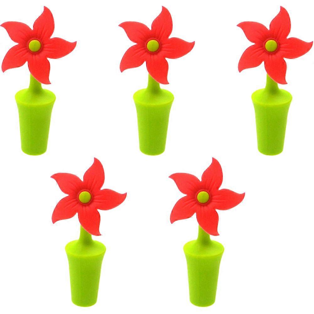 Wine Bottle Stopper, Wine Corks Saver Sealer, Set of 5 as Wine Gifts, Silicone Flowers