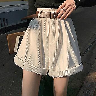 سروال قصير قصير نسائي سروال قصير ملفوف شورت واسع الساق ريترو عالي الخصر فضفاض سروال قصير غير رسمي فضفاض خط شورت فام