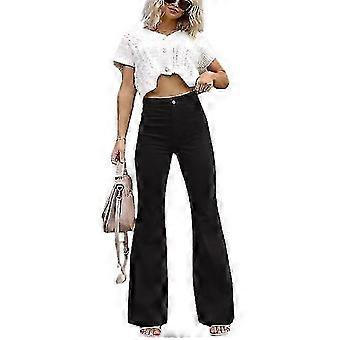 Women's Mid-Rise Corduroy Pants Slim Fit Flared Leg Elastic Waist Casual Comfort