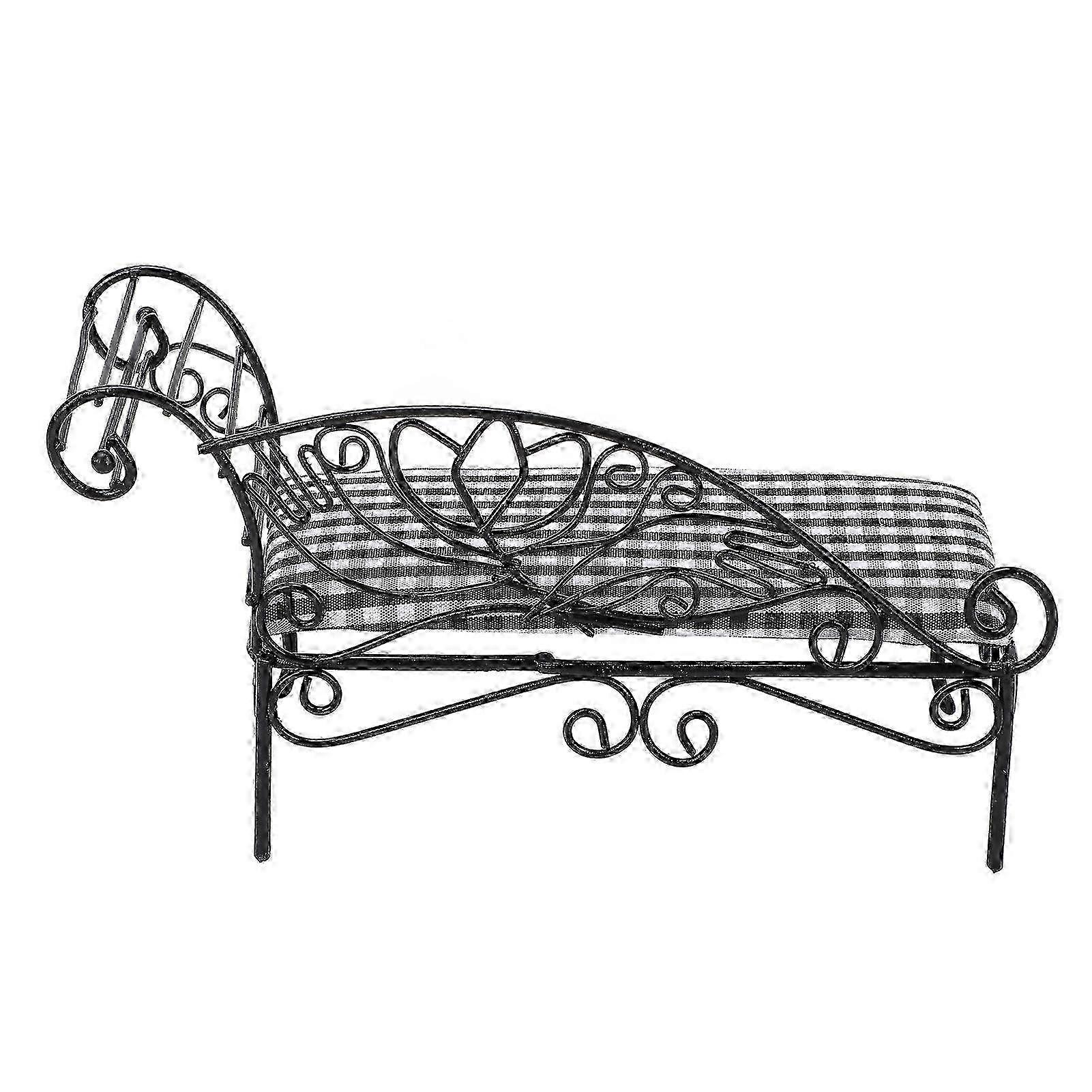 Miniature Dollhouse Bed 1: 12 Iron Dollhouse Furniture Iron Miniature Dollhouse Daybed for Dollhouse Black