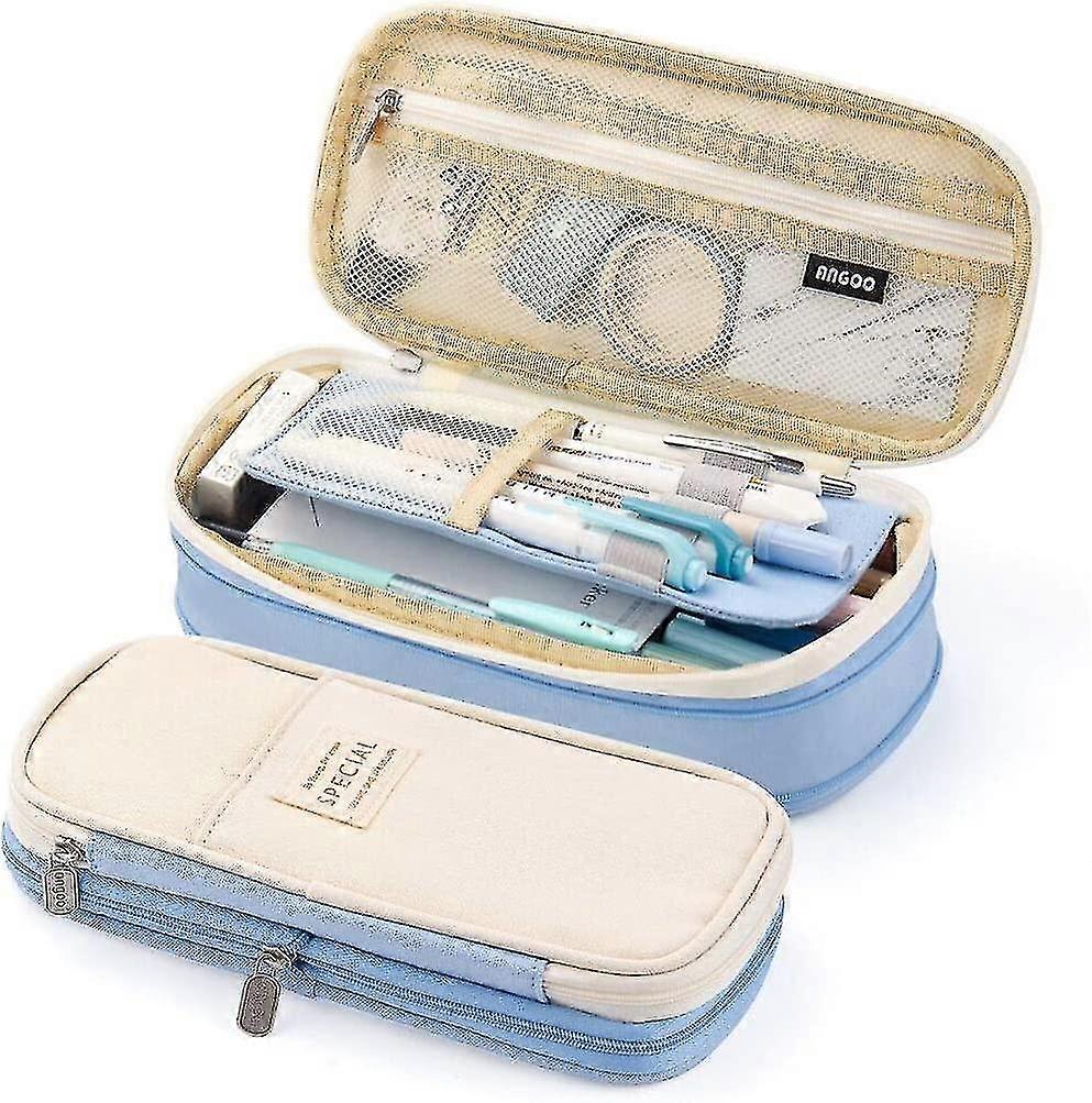 Big Capacity Pencil Pen Case Office College School Large Storage High Capacity Bag Pouch Holder Box Organizer Light Blue