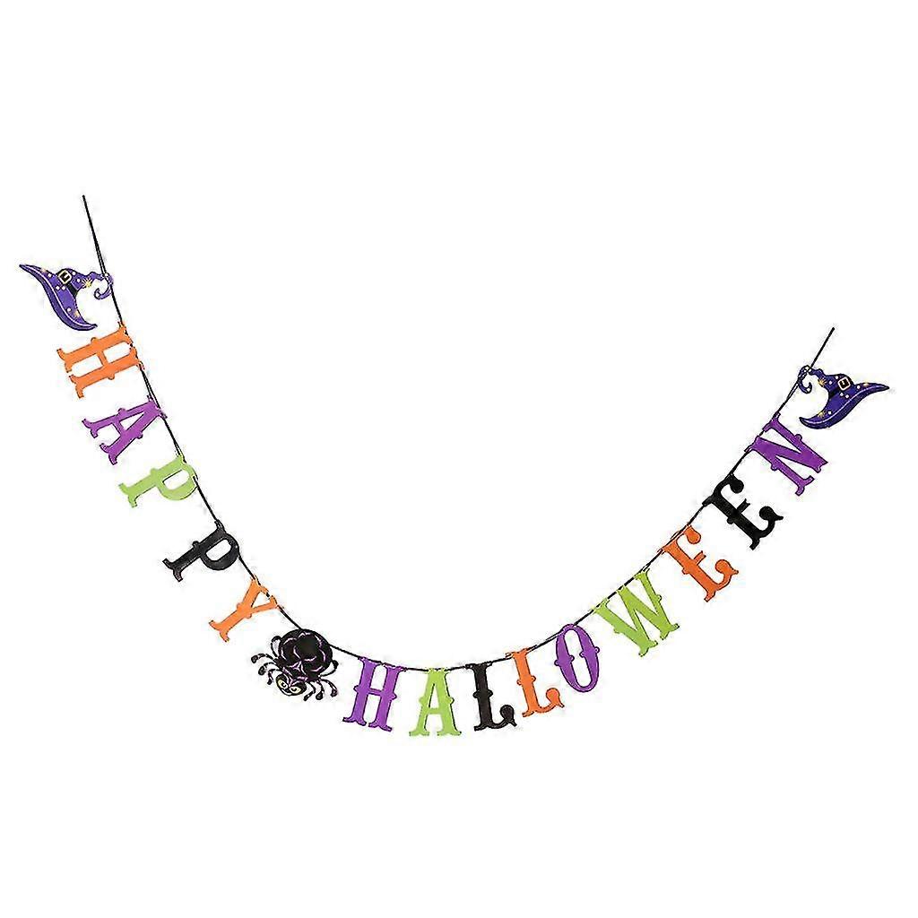 Happy Halloween Bunting Banner Spider Witch Hat Pennant Party Hanging Decor