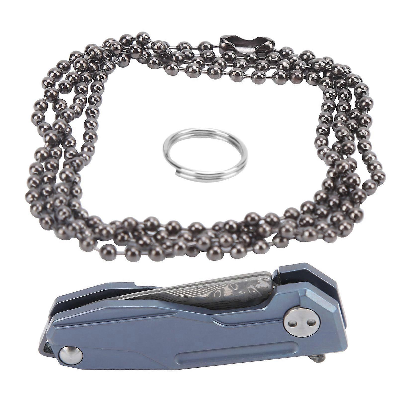 Camping Knife Damascus Steel Blade Titanium Alloy Handle Folding Pocket Knife for OutdoorsBlue