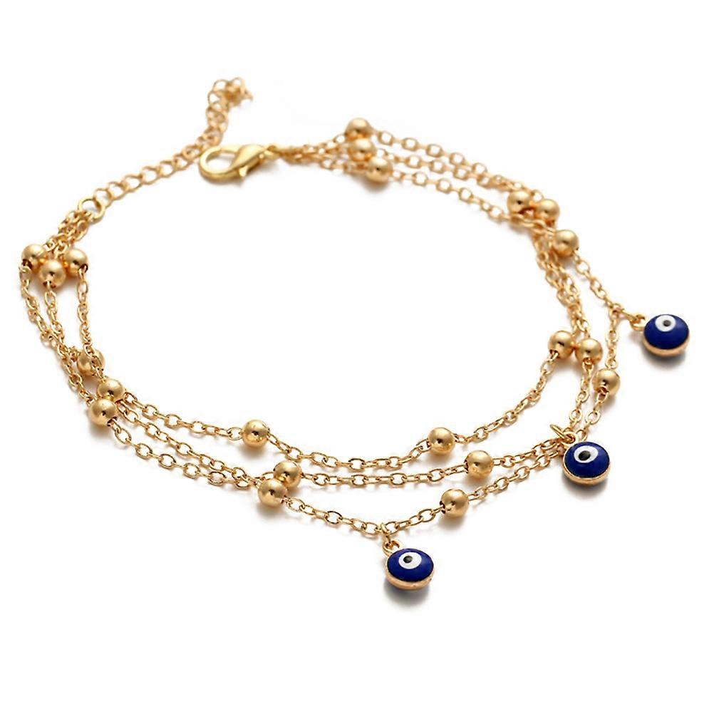 Jewellery Foot Chains Bohemia Chic Mini Evil Eye Anklet for Summer Outfit Golden 21cm Length Anti-fading 1Set