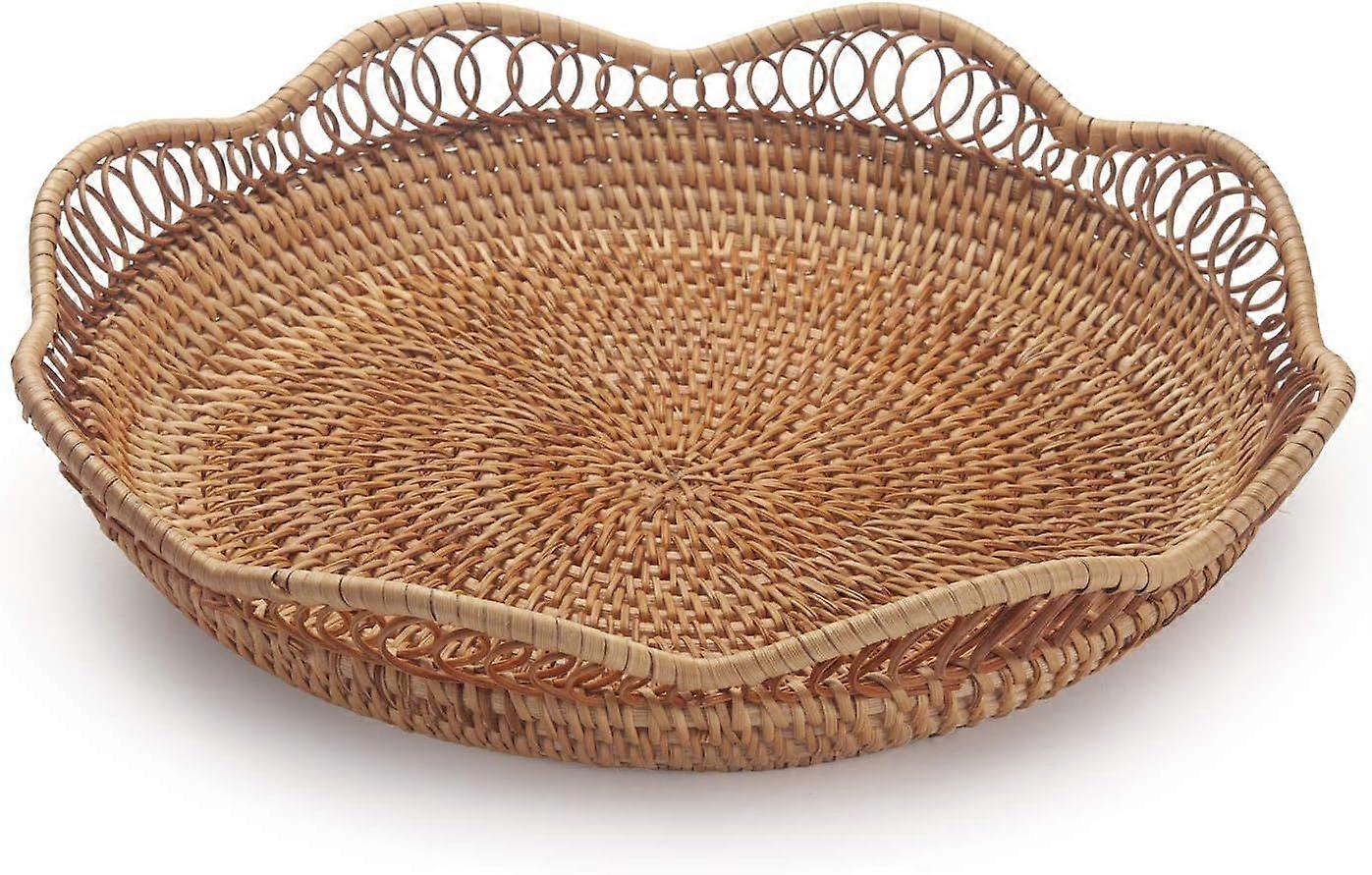 Natural Rattan Bread Basket - Wicker Fruit & Vegetable Storage (30cm D x 6cm H)