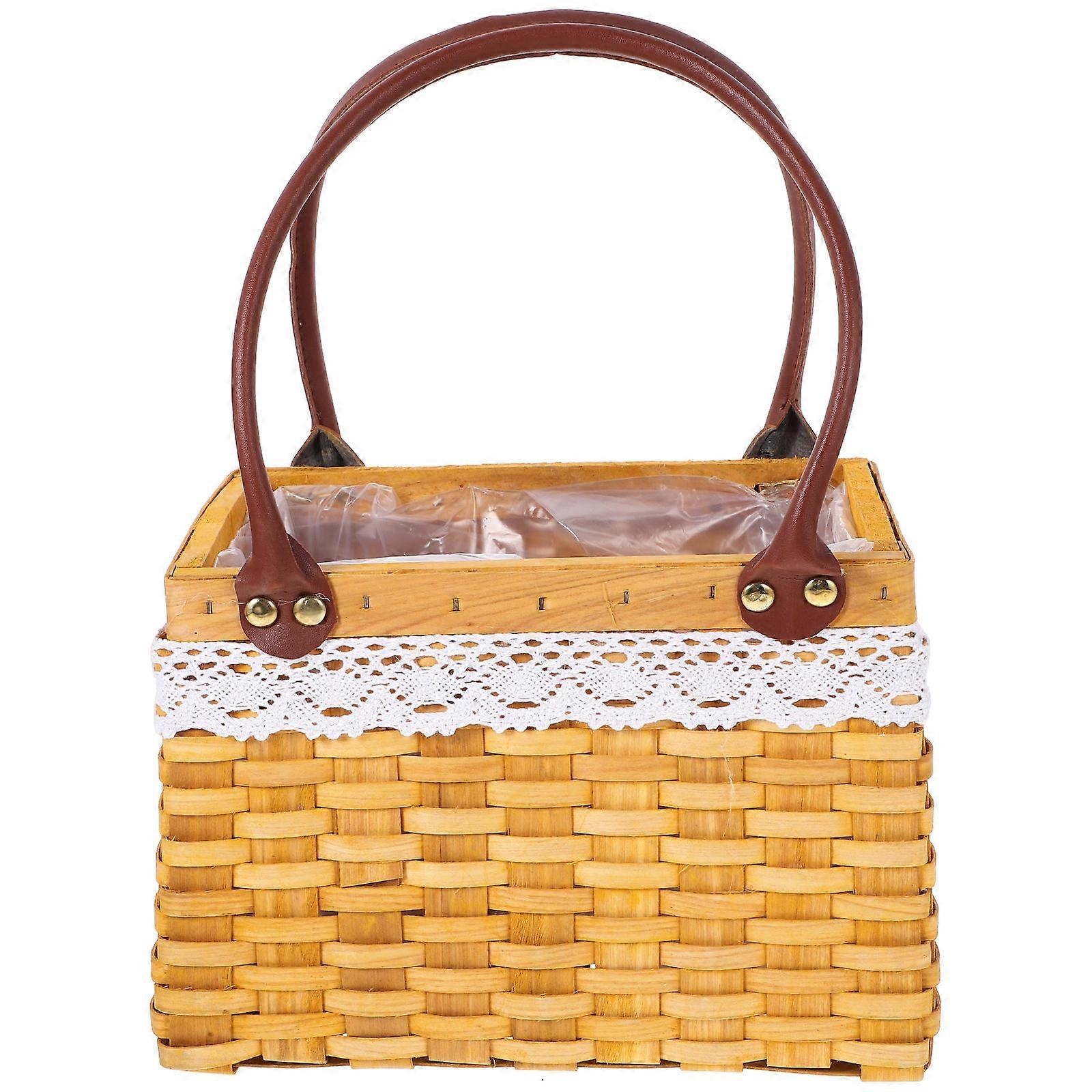 Handwoven Vegetable Basket with Wooden Handles for Portable Fruit, Flower, and Picnic Storage Organiser