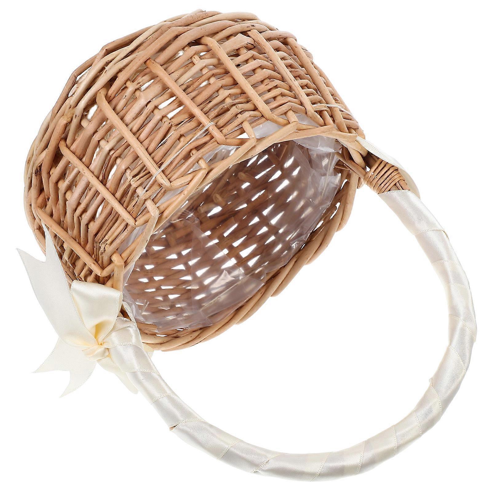 Rustic Flower Girl Basket Natural Willow Handwoven For Wedding Outdoor Use 1Pack